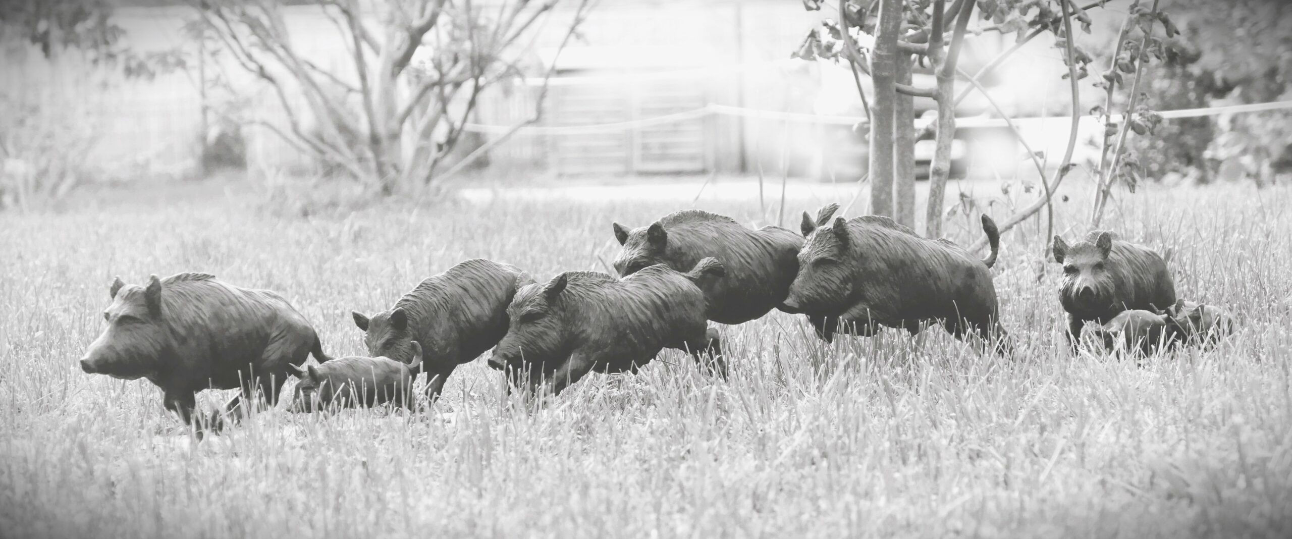Sangliers sautant un fossé